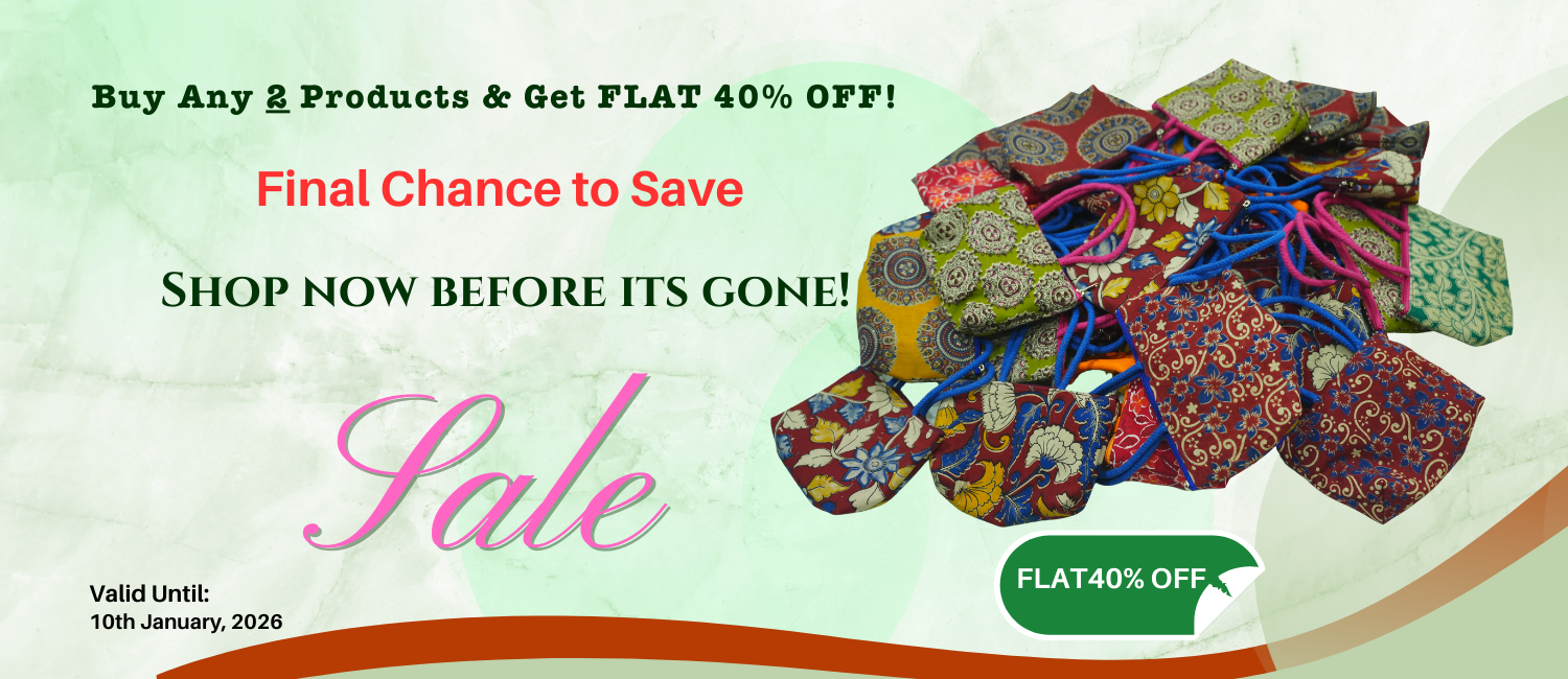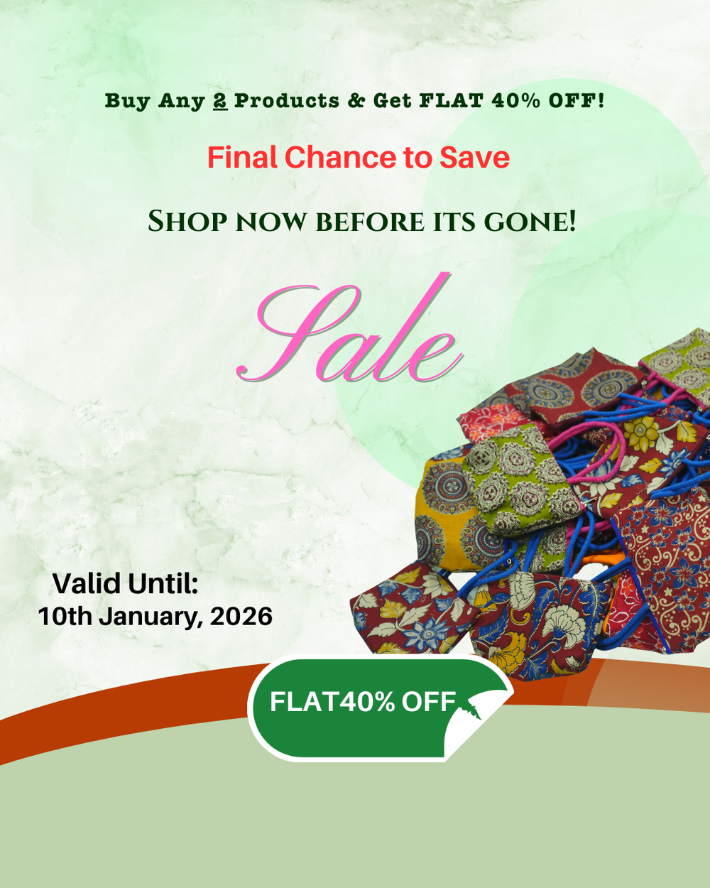Our collection features jute bags, canvas bags, and handcrafted Kalamkari bags. These items suit the eco-conscious individual who prioritizes sustainable materials and distinctive design.